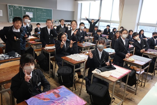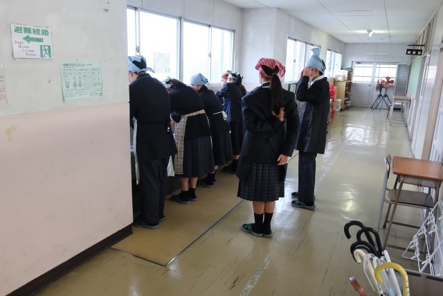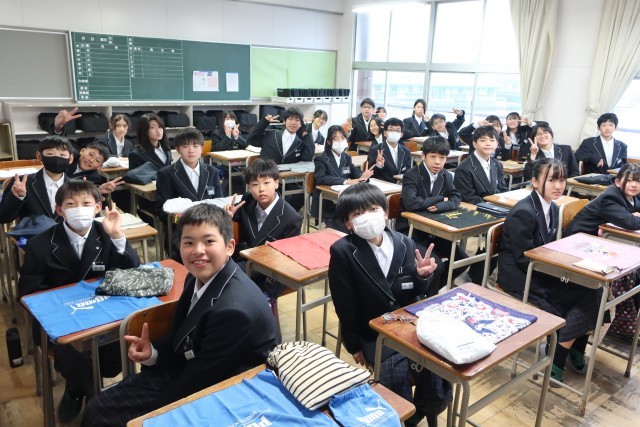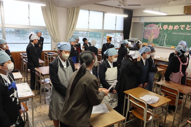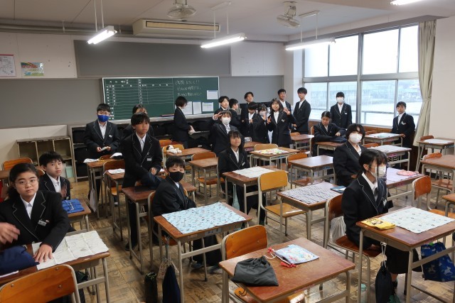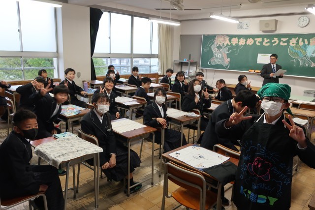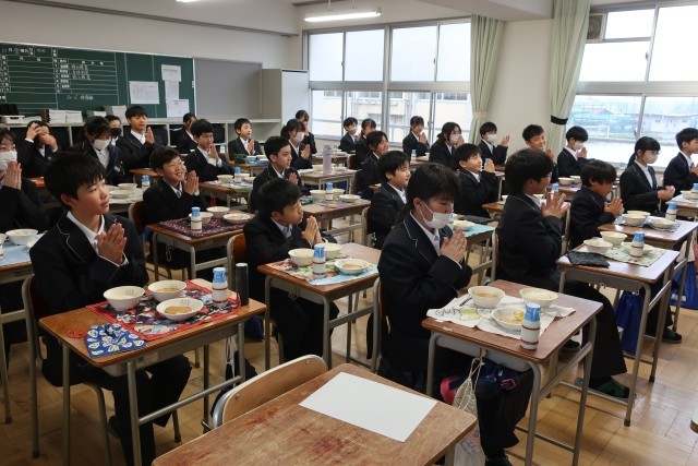1年生の教室の様子です。今日から給食が始まりました。みんなで協力して準備をするのは、小学校と同じですが、新しい仲間との食事は初めてです。きっとおいしく感じたと思います。しっかり食べましょう。