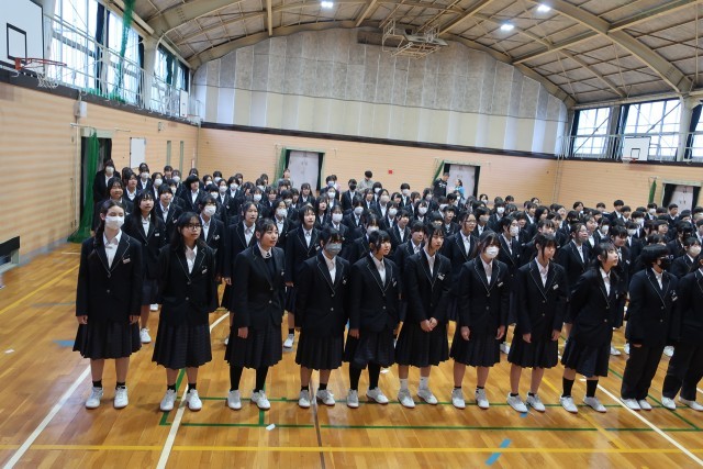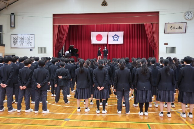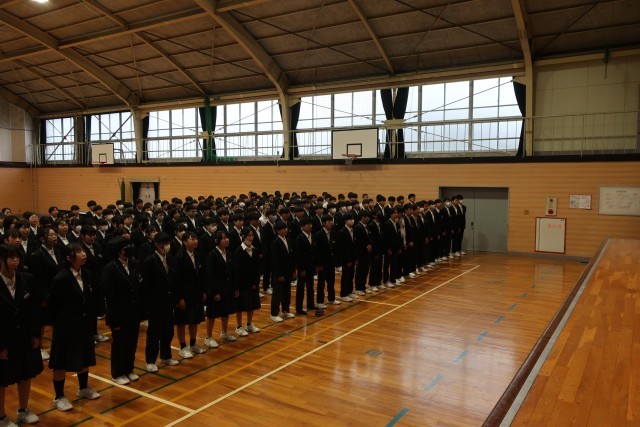 屋内運動場から素敵な歌声が聞こえてきたので見に行くと、3年生のみなさんが合唱練習をしていました。どこかで1年生のみなさんに披露してくれる予定らしいです。1年生のみなさん、3年生の本気の合唱、楽しみにしていてくださいね。