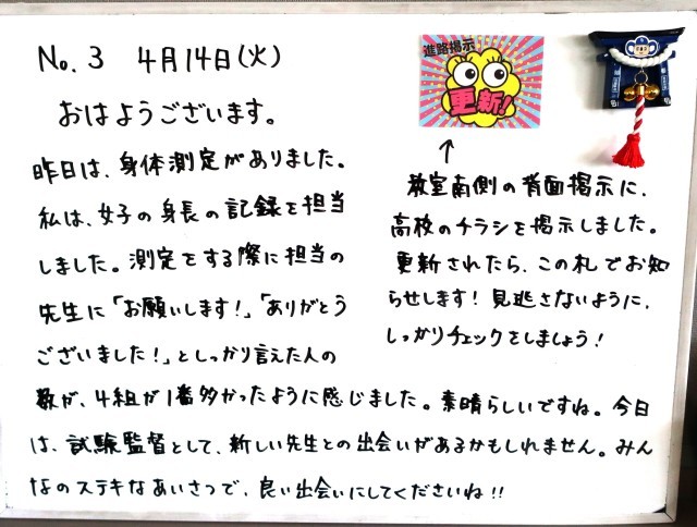4月14日(火)3年生 先生からのメッセージ