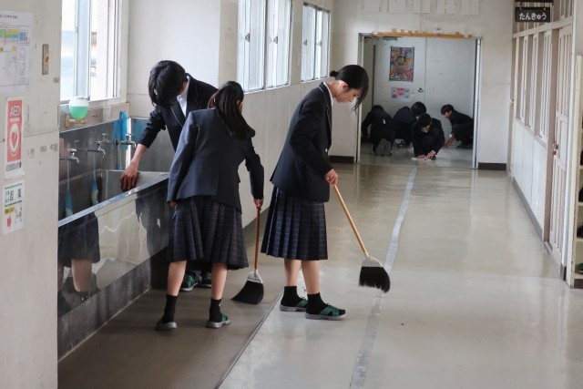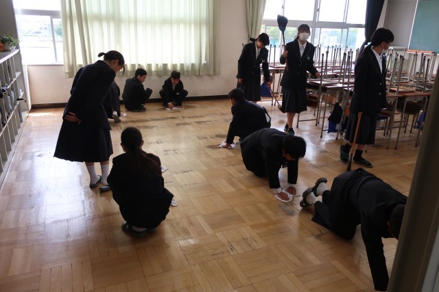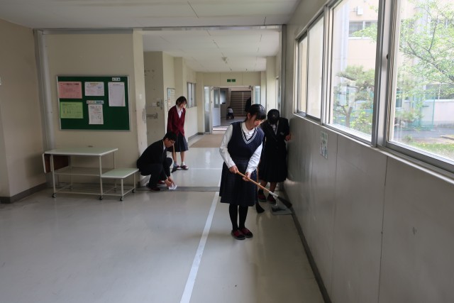 全校生徒での清掃活動を、新年度になって初めて行いました。1年生のみなさんはもちろんですが、3年生も2年生も、初めて担当する場所が多く、戸惑いながらのスタートになりました。しかし、ひたむきに取り組む姿勢はとても素晴らしいと思いました。みんなで協力して、よりよい環境づくりをしていきましょう。