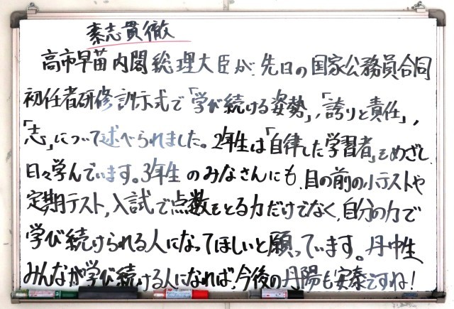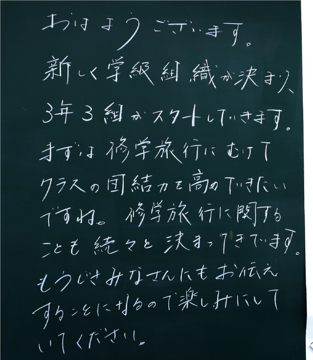 学びを深めることで、自分自身の将来の可能性がどんどん大きくなっていきます。そんな気持ちを大切にしながら、授業に向かう気持ちを整えていきましょう。3年生のみなさんの夢の実現に向けての取り組みを先生たちも応援していますよ。