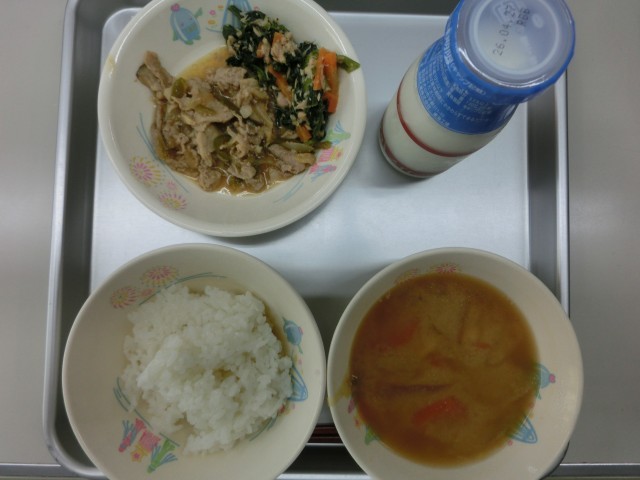 今日の呉汁には、大豆製品が3つ使われています。大豆を水に浸してすりつぶした「呉」と「豆腐」、「みそ」です。大豆製品は、みなさんの成長に必要なたんぱく質が豊富に含まれるだけでなく、カルシウムや鉄、ビタミン類なども含まれるため、積極的にとりたい食品です。