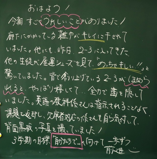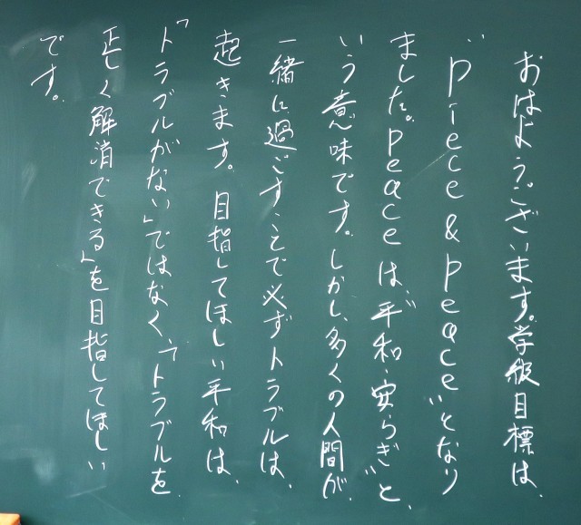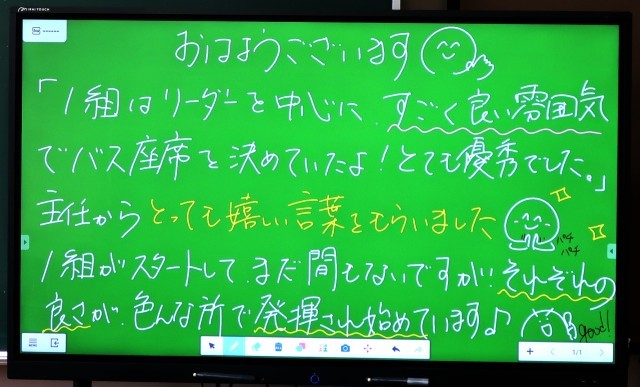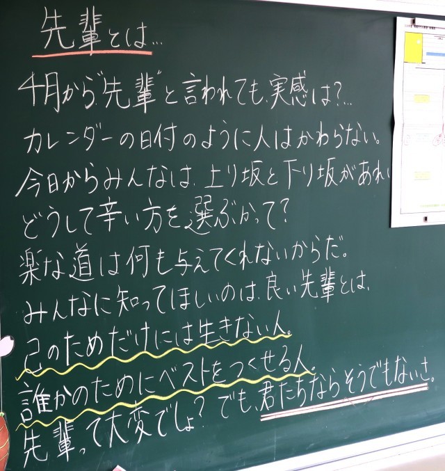 2年生は、リーダー会が本格的に活動を開始しました。今年も、いろいろな行事などの企画や運営をがんばってくれそうですね。活躍を楽しみにしています。先輩と呼ばれるようになって10日ほど経ちました。後輩たちの素敵な目標になってくれてありがとうございます。
