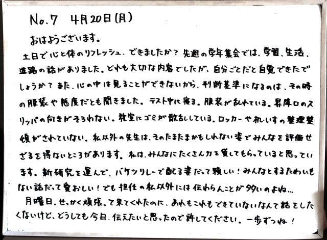 4月20日(月)3年生 先生からのメッセージ