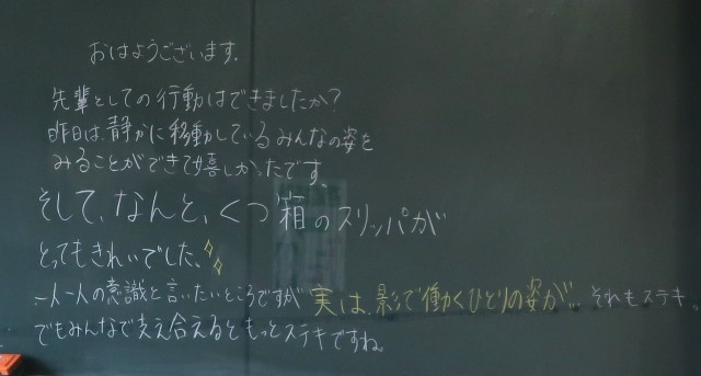 2年生も本格的に教科の授業が進んでいます。理科室や音楽室への移動の際には、とても整然とした態度で移動することができています。さすが2年生ですね。学習に向かうよい雰囲気をみんなで作り上げていきましょう。