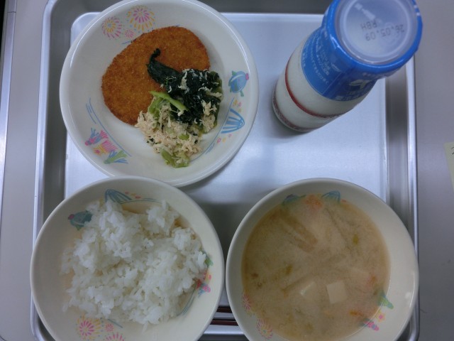 今日の給食の「豆乳入りみそ汁」には、白みそや豆乳など、大豆から作られた食べ物が使われています。豆乳は大豆を水につけてからすりつぶし、水を加えて煮た汁を布でこしたものです。大豆は畑で栽培される作物の中でも、体をつくるもとになるたんぱく質が豊富に含まれており、「畑の肉」と言われています。