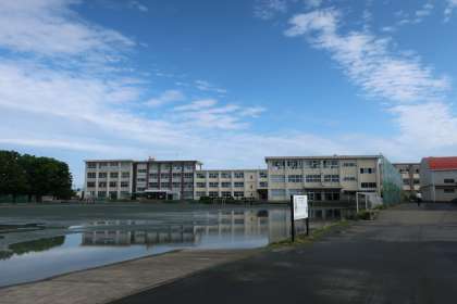 昨夜、とてもたくさんの雨が降りました。グラウンドには大きな水たまりがありましたが、気持ちのいい青空が広がっていました。生徒たちの表情も晴れやかでした。