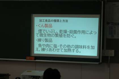 9月12日(月)1年生 授業の様子(家庭科) 公開日 2022/09/12 更新日 2022/09/12 1年 家庭科では、加工食品の特徴について学習しました。食品を加工するための目的が、おいしく味付けをするだけでなく、長期保存や調理時間の短縮なども大切な目的であることが分かりました。