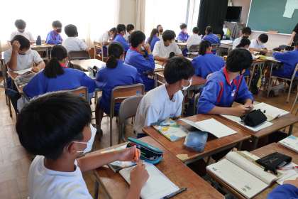 9月12日(月)2年生 授業の様子(国語) 公開日 2022/09/12 更新日 2022/09/12 2年 国語では、「盆土産」という作品を読み、登場人物の人柄や心情などを読み取りました。グループで話し合いながら、深まりのある学習を目指しています。