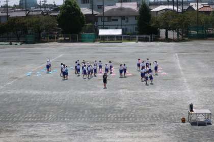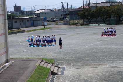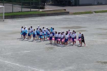 9月12日(月)3年生 授業の様子(体育) 公開日 2022/09/12 更新日 2022/09/12 3年 女子の体育では、今日はグラウンドを使って隊形移動の練習を中心に行いました。学年全体で練習を行う日が楽しみです。
