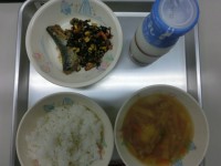 今日の白みそ汁には、だいこんが入ってます。だいこんは、育てる土の性質などによって形が変わりやすい野菜です。また、さまざまな品種があり、とても長い守口だいこんや、大きくて重い桜島だいこんなど、ギネス記録を持つ品種もあります。給食で使われるのは、市場に一番多く出回っている青首だいこんです。