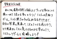 テスト週間も、中盤に入りました。振り返りや発展の学習も順調に進んでいるようです。...