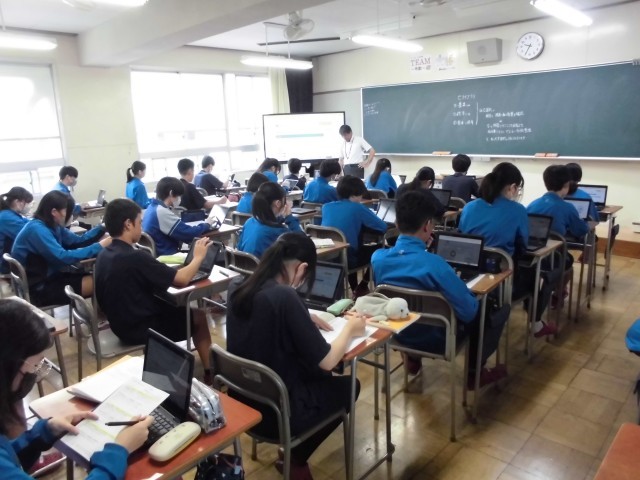 2枚目は3年生「社会」の様子です。単元の振り返りをしています。学習の定着を確認する課題を自分で選択し、問題に取り組んでいました。自分の状態を分析し、それに合った課題を選択し取り組むことで、さらに力を高めていきたいですね。