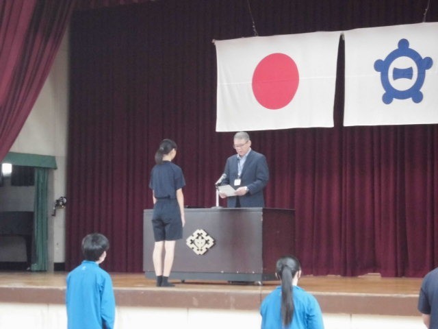 本日の生徒集会で、後期学級役員の認証式がありました。2年生が全校を代表し認証状を受け取りました。今後は学校を引っ張っていく場面も増えていきます。浅井中の伝統を引き継ぎ、さらに良くしていけるよう、2年生全体で頑張っていきましょう。