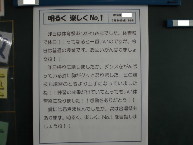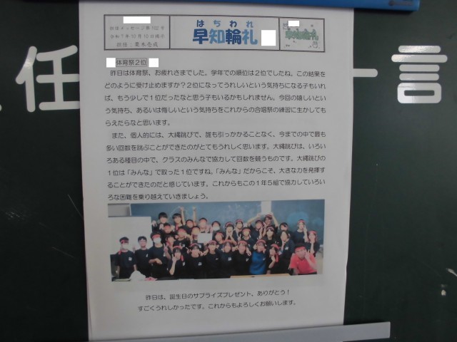 10月10日(金)<心の風景>担任からのメッセージ その2