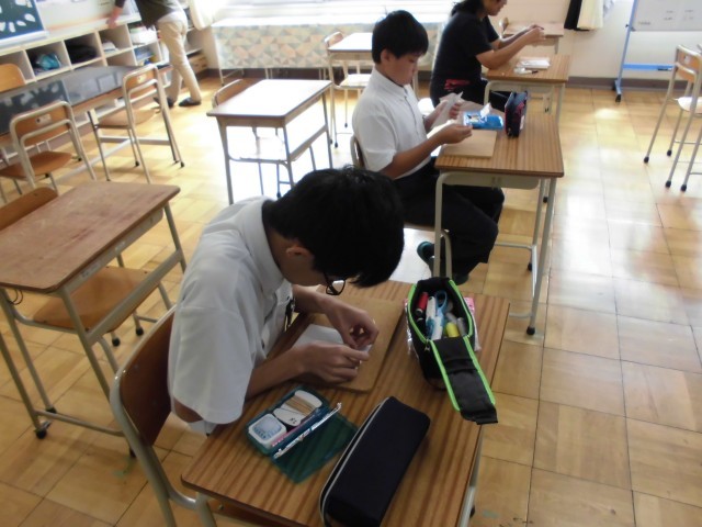体育祭の翌日でしたが、気持ちを切り替えて、授業に取り組んでいる生徒がたくさん見られました。(1枚目:1年生「英語」、2枚目:2年生「理科」、3枚目:3年生「保健」、4枚目:特別支援学級「作業」)