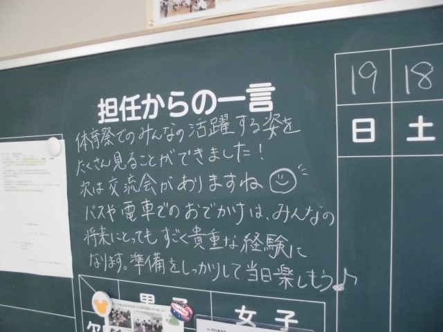 10月15日(水)<心の風景>担任からのメッセージ