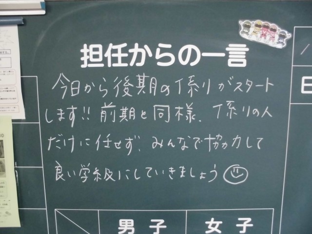 後期が始まりました。新たな気持ちで、自分・学級・学年、そして浅井中学校をレベルアップさせていきましょう!