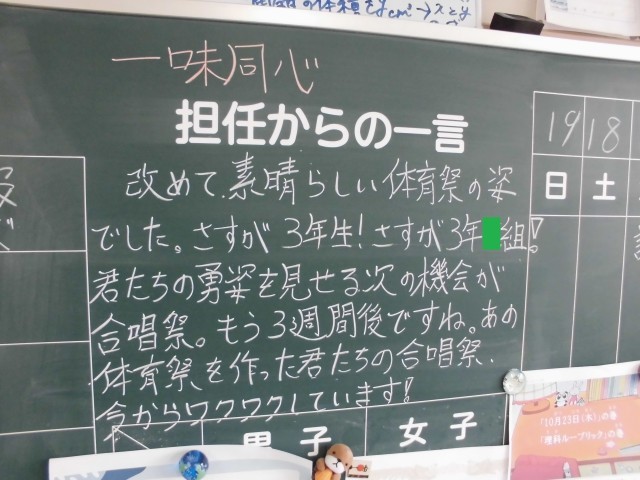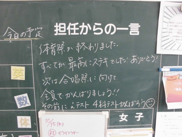 10月15日(水)<心の風景>担任からのメッセージ その2