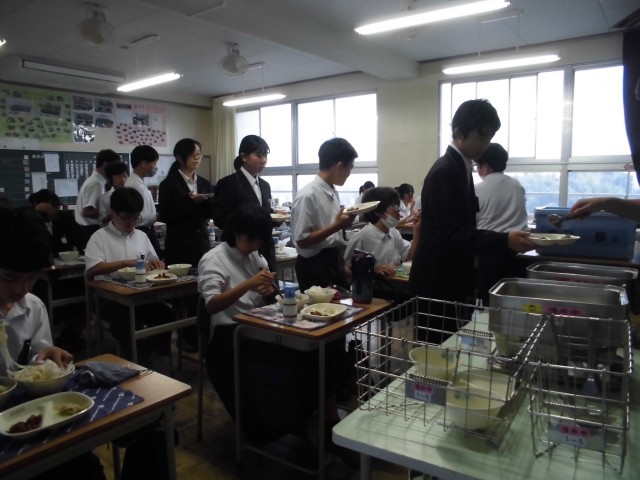 1年生の学級では「ありがとうございます!」という勢いのある声が聞こえてきました。少しのさつまいもと大豆を大人数で分け合う様子がありました。1年生は、1人前食べられる子が多くなって急成長中です。
