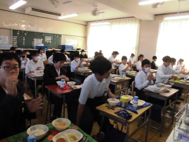 給食前に、「今日は栗コロッケとかきたま汁だよ!」事前にチェックしてきた給食の献立を説明したり、献立表をのぞき込む姿がありました。楽しみなことが多いことはとても幸せなことですね。