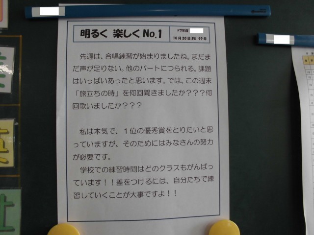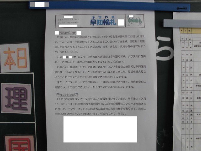 合唱祭に向けて、1・2年生は学年のリハーサルが行われます。当日に歌に全力を注げるよう、動きをしっかり覚えておきましょう。