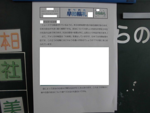 10月21日(火)<心の風景>担任からのメッセージ その2