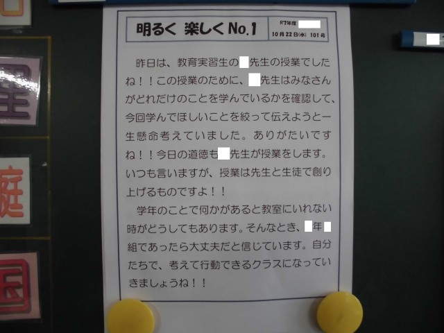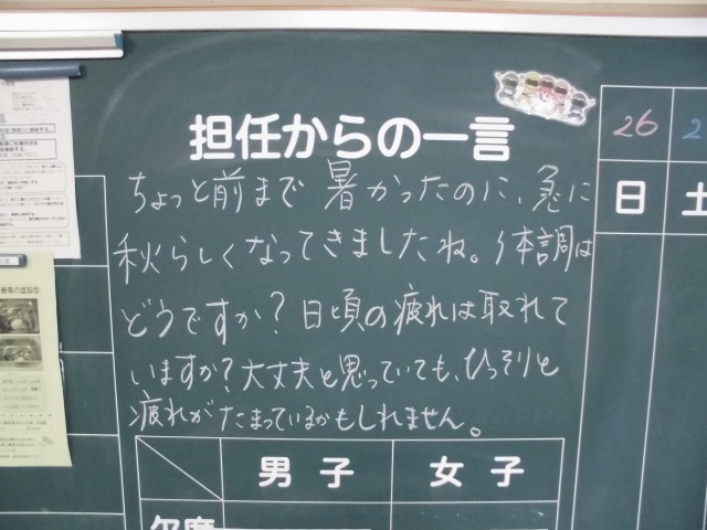 世の中の動き、季節の移り変わり、浅井中学校の動き・・・いろいろな視点から「今」を見て、自分にできることを考え、行動できるといいですね。