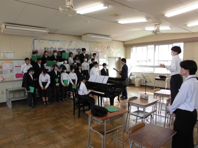 3年生(2枚目の写真)と1年生(3枚目の写真)は、教室や特別教室に分かれて練習を行いました。