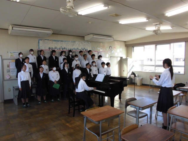 歌に「心」が感じられるクラス。まだまだ伸びしろがあるクラス。クラスの状態は様々ですが、本番まであと10日です。限られた時間の中で、自分たちの歌を磨き上げてほしいと思います。