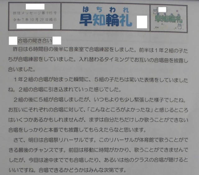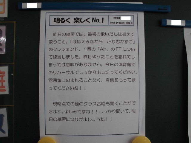 合唱祭に向けて、先生の想いも心に留めながら、オンリーワンの歌声を創り上げたいですね。
