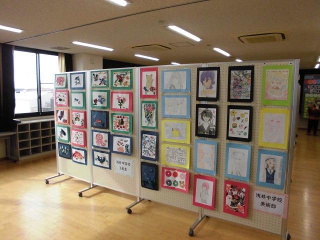 地域の方の作品や浅井中学校の美術部、授業で生徒が制作したすてきな作品が展示されていました。