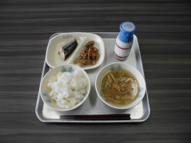 ご飯 牛乳 さばの塩焼き ごぼうの甘辛炒め 沢煮わん