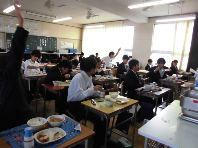 1年生の教室では、野菜が苦手な生徒も、沢煮わんのだしのうま味をじっくり味わう姿や「隠し味にこしょうが入っているの?」と驚く声がありました。寒くなり汁物で一息つきたくなる季節になりました。のどや体を温めて、合唱祭に向けて体調を整えたいですね。