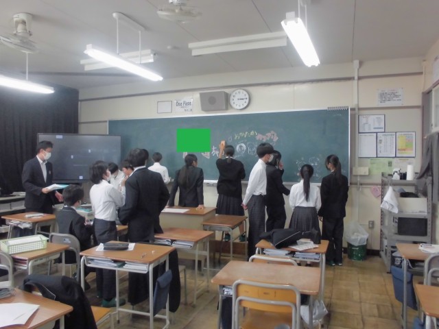 1ヵ月間の感謝の気持ちを込めて、色紙を贈りました。実習生は、「楽しむ姿、頑張る姿など、いろんな姿を見れて楽しかった」と言っていました。1年生も先生と過ごせて楽しかったと思います。