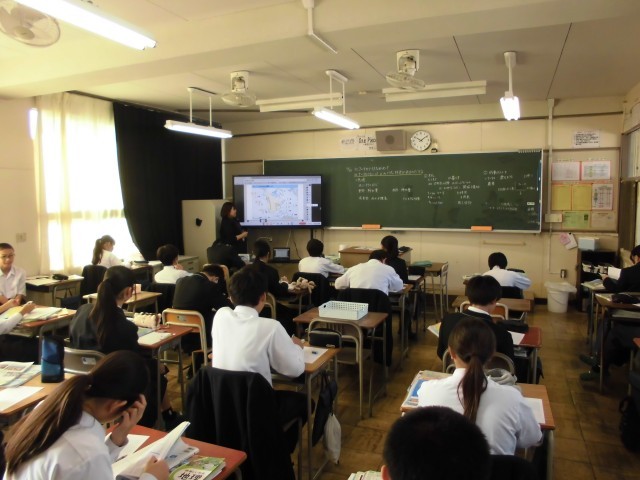 4枚目は1年生「社会」の様子です。「北アメリカ州」について学習をしています。教科書や地図帳に載っている、雨温図や地形などについての情報を読み取りながら、北アメリカ州の特色をまとめていました。
