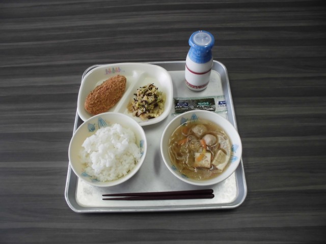 ご飯 牛乳 あじフライ 白菜のこんぶ和え ちゃんこ汁