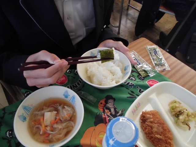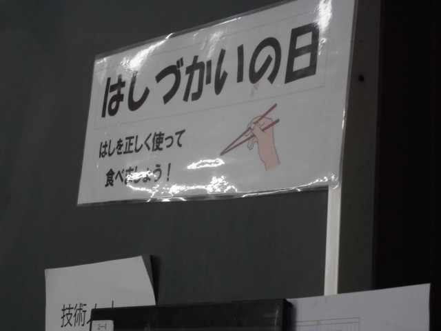 1年生の教室では、放送や、掲示をよく聞いていて、はし使いを気にして食べている様子がありました。ただの2本の棒ですが、上手に使えばどんな料理でもスムーズに食べることができます。情報をよく聞いて自分なりに活かすことで、よりおいしく食べられますね。