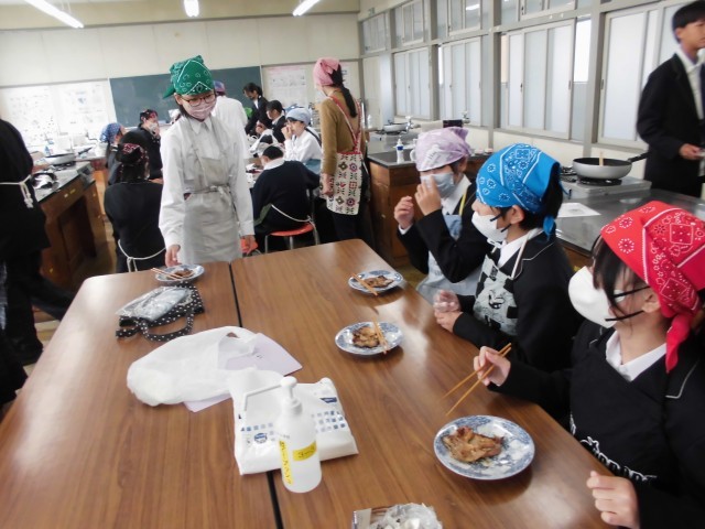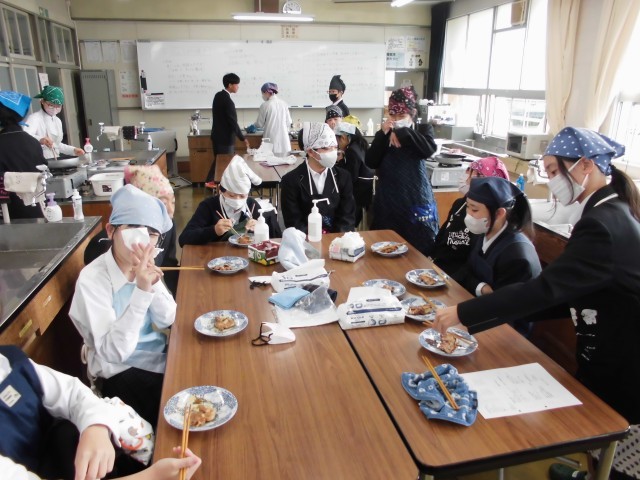 調理実習がありました。準備、調理、洗い物まで自分たちで行っていました。料理の楽しさだけではなく、大変な部分も感じたと思います。ぜひ、普段の食事のときには、作ってくれた人に感謝の気持ちを忘れずに、残さず食べれるといいですね。