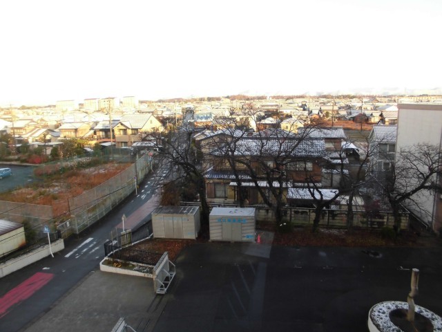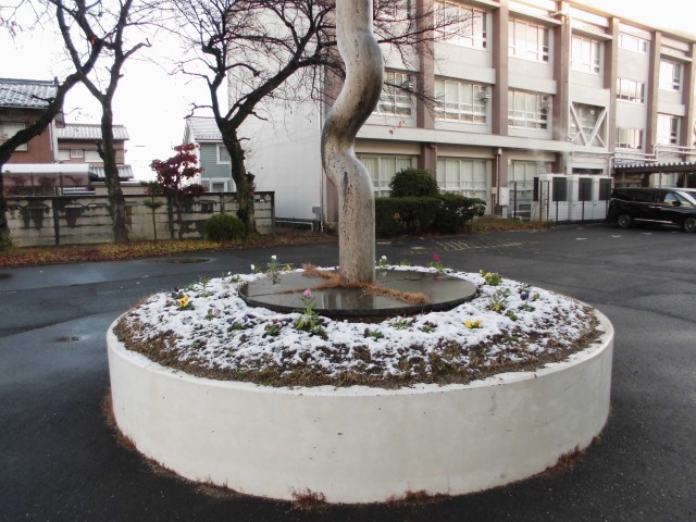 昨日の夜に、浅井中学校付近でも雪が降ったようです。花壇はうっすらと雪化粧をしていました。