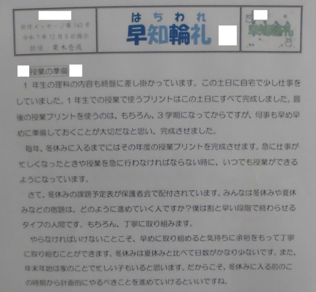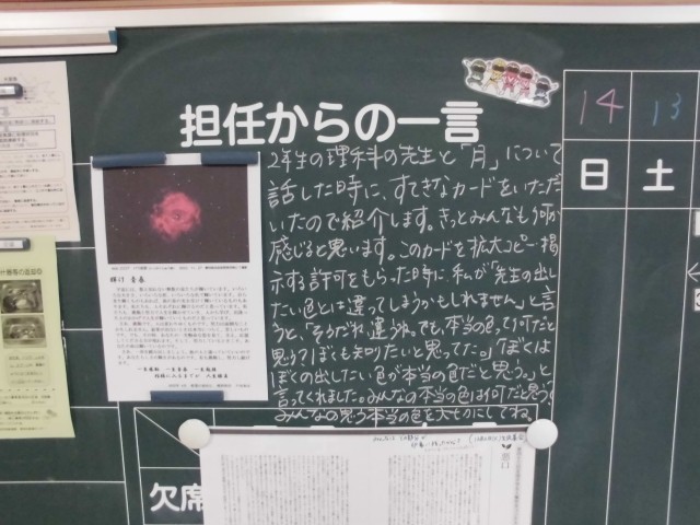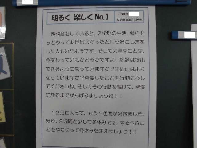 2学期も残り少なくなってきました。先を見据えて、今自分にできることに取り組んでいけるといいですね。