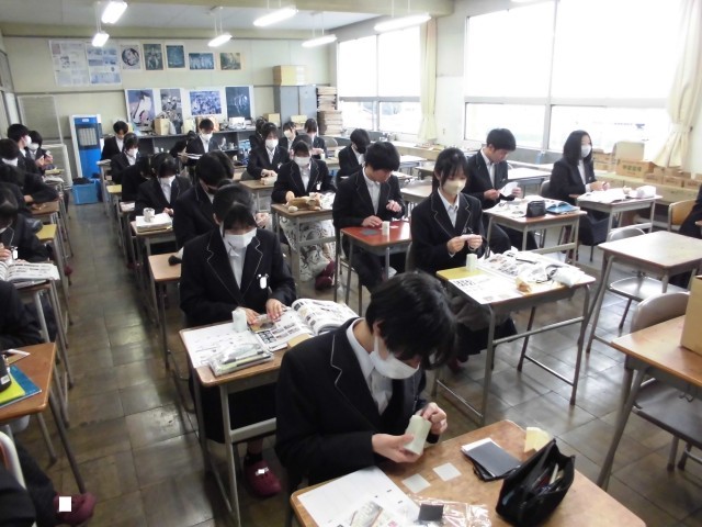 2枚目は3年生「美術」の様子です。石を削って印を作っています。今日は初めての授業だったようで、材料や制作の手順などについて確認をしていました。