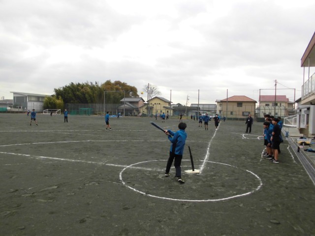 3枚目は2年生「体育」の様子です。ティーボールの試合を行っています。大きな声で応援したり、よいバッティングに「ナイスバッティング!」と声を掛けたりと、全員で楽しみながら試合を楽しんでいました。