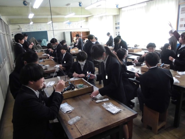 2枚目は2年生「技術」の様子です。今日からコンセントを作る学習に入るようです。キットの内容を確認しながら、はんだ付けを行う準備を進めていました。先生の話をしっかり聞きながら、家でも使えるコンセントを完成させましょう。