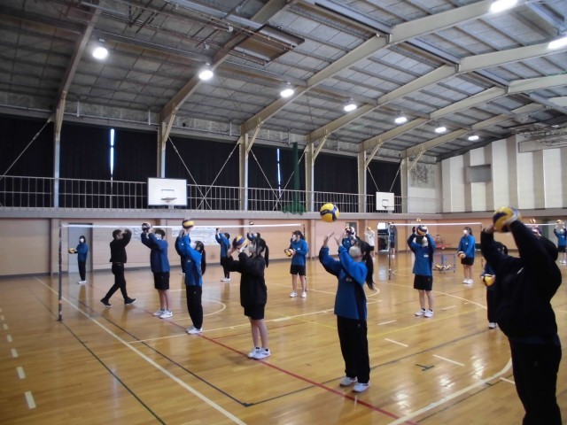 3枚目は3年生「体育」の様子です。バレーボールの練習をしています。オーバーハンドパスのポイントを先生に聞きながら、意欲的に練習に取り組んでいました。試合に生かせるといいですね。