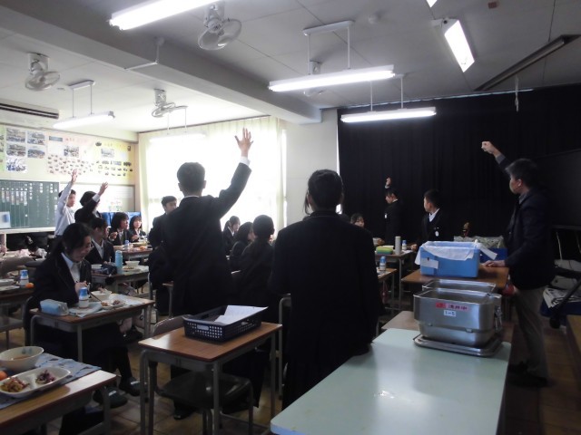1年生の学級では「冬が旬の食べ物は何?」と季節の移ろいを感じながら食べることができました。また、なかなか食べる機会がないわかさぎも「カルシウムで背を伸ばしたいから」「季節だから」と増量する姿もありました。初めての食材にも挑戦し、自分の体に必要な栄養を摂ろうとする気持ちは大事ですね。