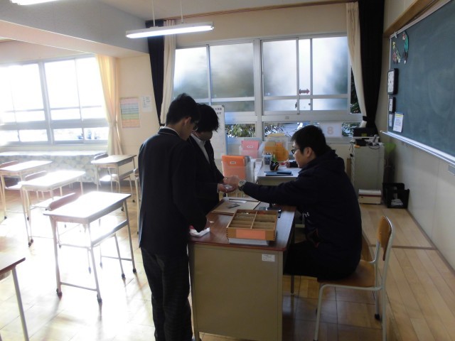 1枚目は特別支援学級「数学」の様子です。買い物場面を想定した計算に取り組んでいます。計算が合っているか先生と確認をしていました。