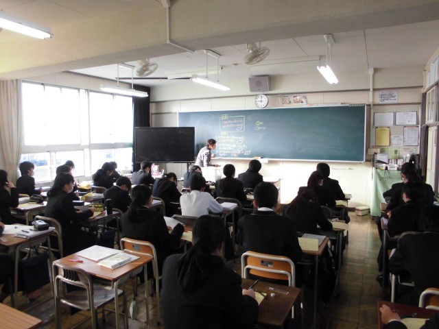 3枚目は2年生「数学」の様子です。平行四辺形になるための条件について学習をしています。5つの条件について、一つ一つの条件について、みんなで考えながら理解していました。
