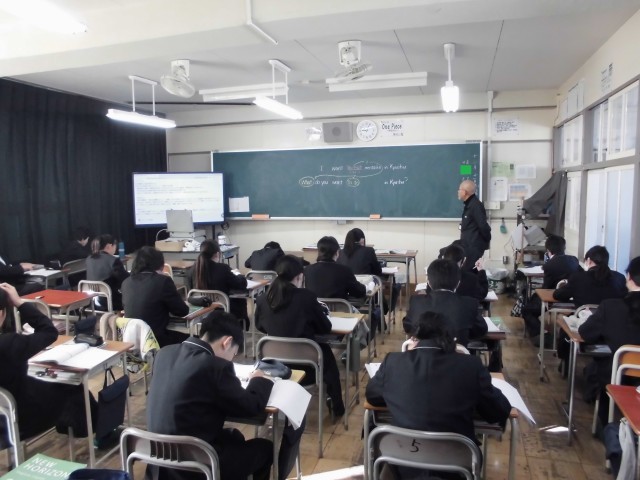 4枚目は1年生「英語」の様子です。「want to + 動詞の原形」の疑問文とその答え方の表現について学習をしています。先生の説明を聞きながら、そのポイントをプリントに丁寧にまとめていました。