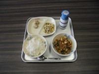 2年生の学級から「今日はマーボー豆腐がいつもと違う」「何が違う?」という声が聞かれました。同じ名前のメニューでも、4月以降、野菜の量や種類、調味料やでんぷんの配合などを少しずつ変え、改良を重ねてきました。そうしたわずかな違いにも気付くというのは、日頃から給食に真剣に向き合い、味わって食べている証拠ですね。